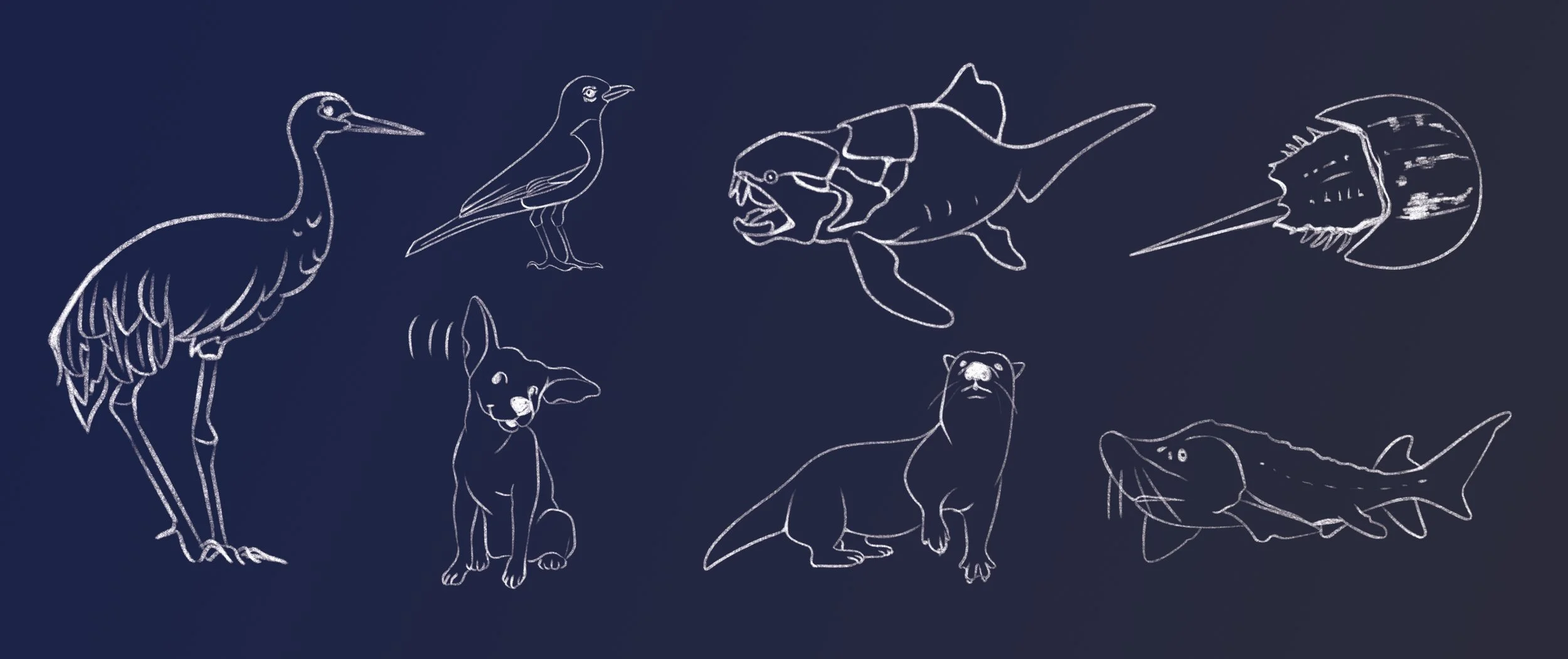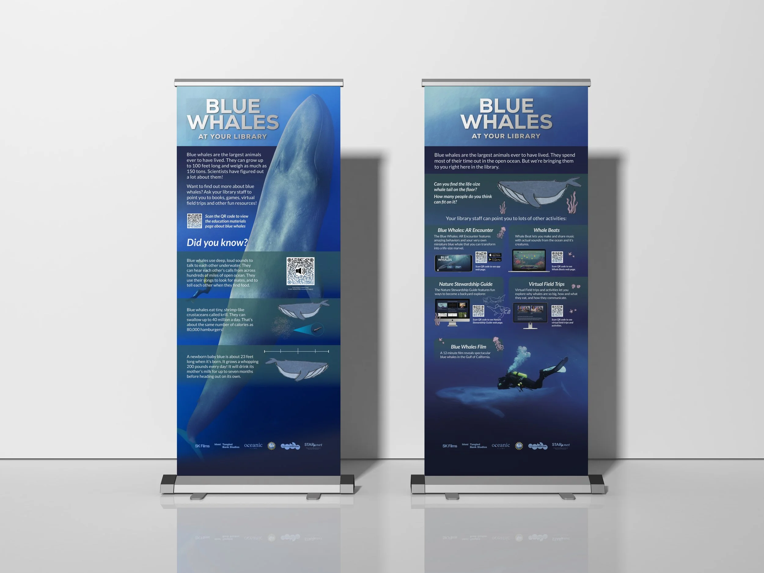 The client needed roll-up banners featuring key information from BLUE WHALES: Return of the Giants. They also requested supplemental illustrations highlighting local animals for each participating library. Additional deliverables included activity guides formatted to match existing materials and support hands-on STEM engagement.
